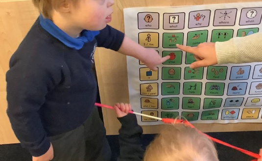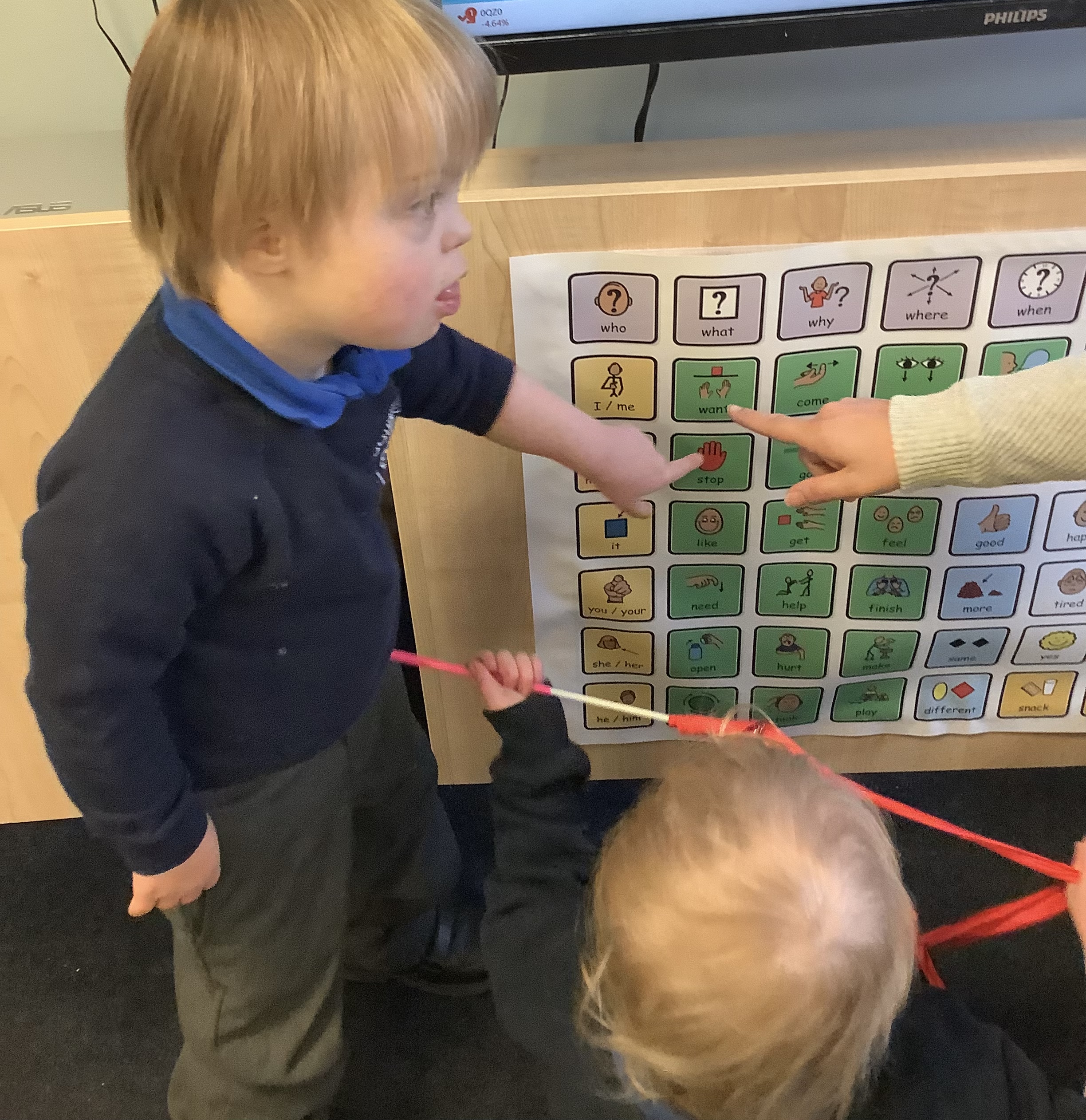 Juniper class have been working on using the new core board to request items they want during Write Dance. We have been increasingly independent when pointing to 'I want...' on the core board or signing this using Makaton. We have also been applying our listening and attention skills to apply our understanding of prepositional language.