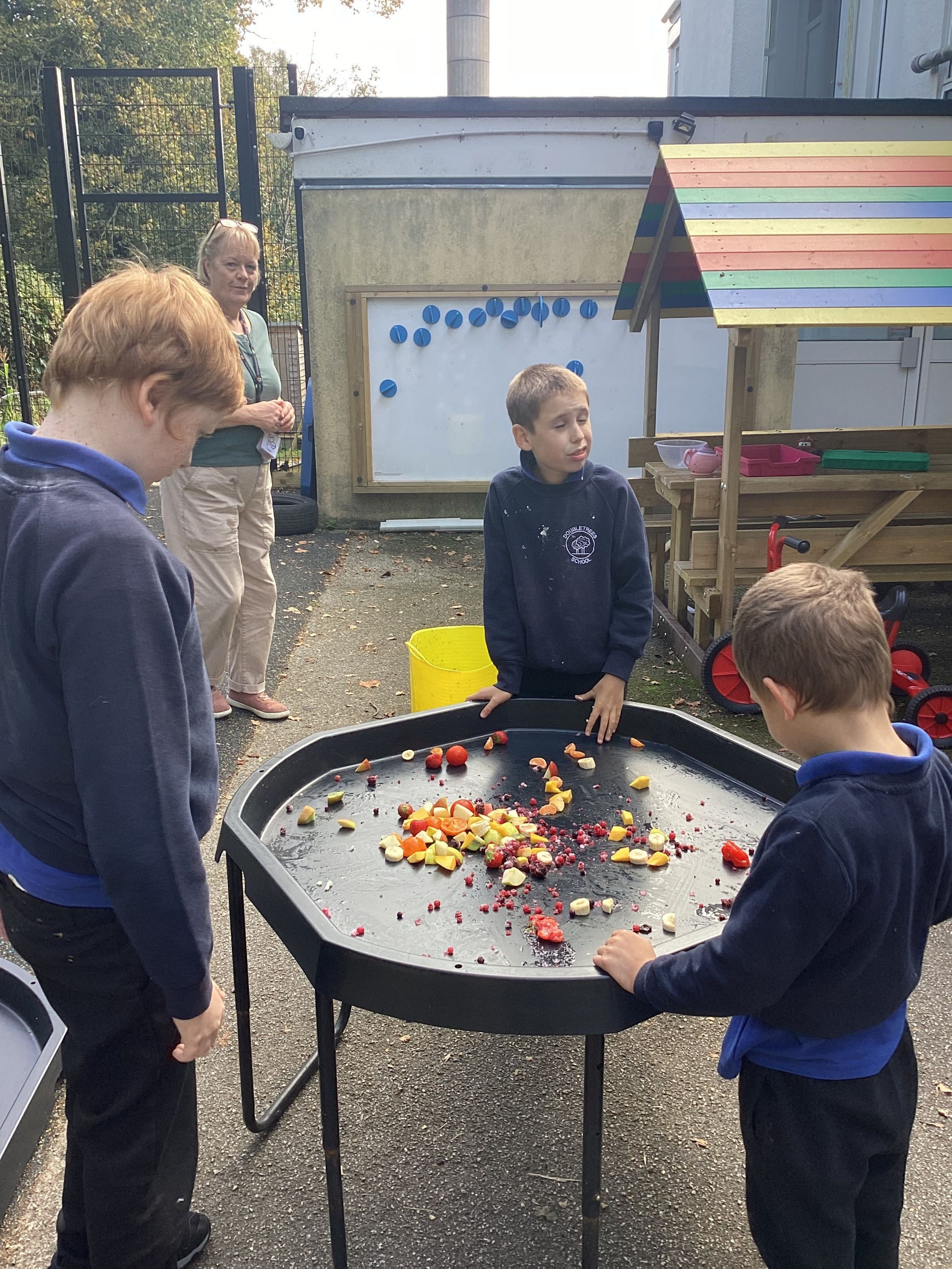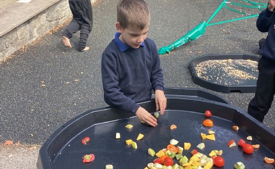 During our 'exploring the world' topic in Science, we have been working with wet foods. This week, we explored healthy fruits using our hands and feet. The learners enjoyed working alongside each other and practicing sharing.