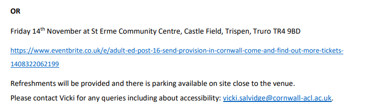Friday 7th November at Chy Trevail, Beacon Technology Park, Dunmere Road, Bodmin PL31 3FR