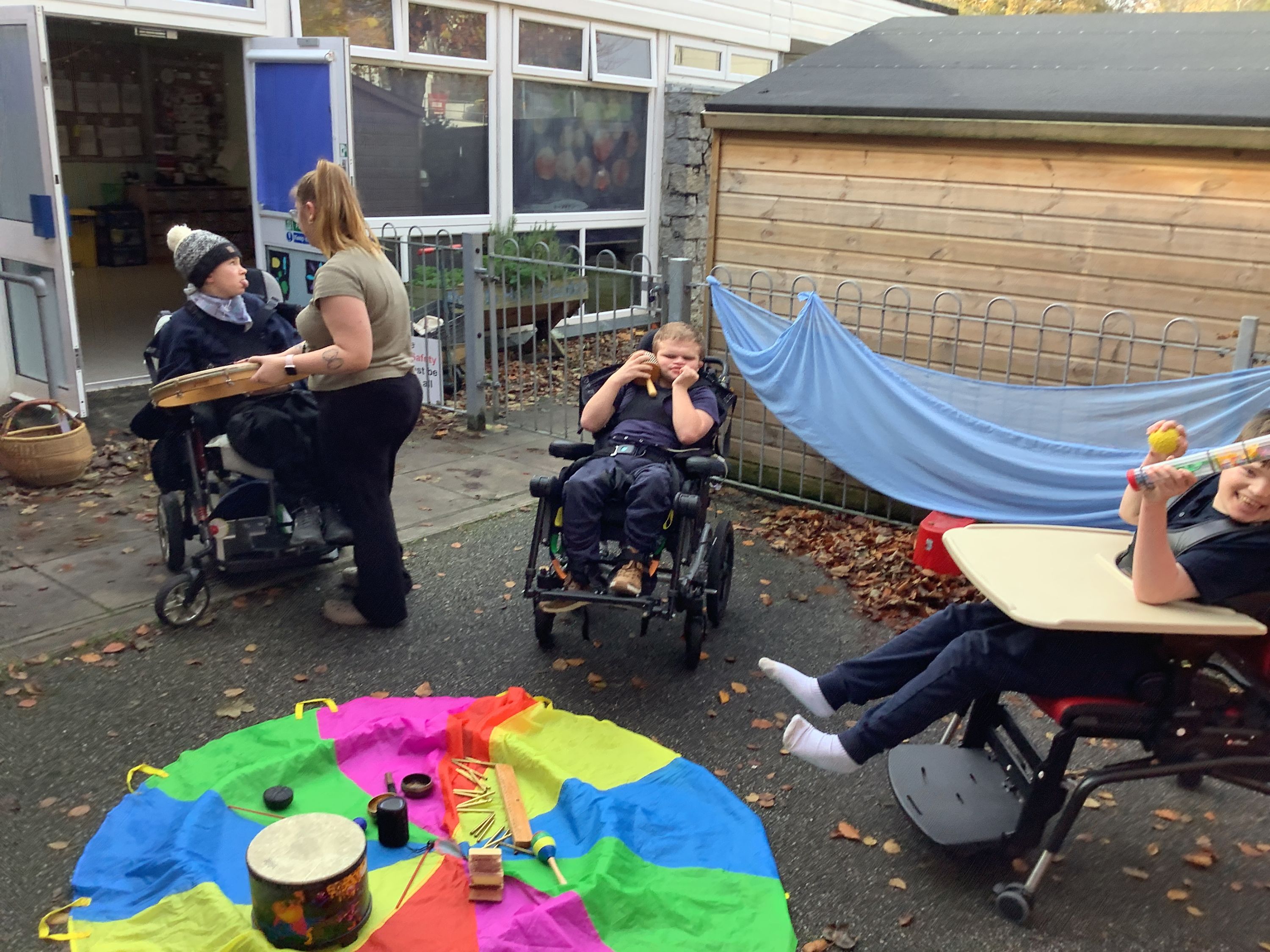 Redwood class have been enjoying their outdoor space and making the most of the drier days. We participated in a collective soundbath and explored instruments, how they feel and how they sound. We worked on our cause and effect skills and communicating our preferences through vocalising and gestures. Using these skills help us to contribute to the world around us.