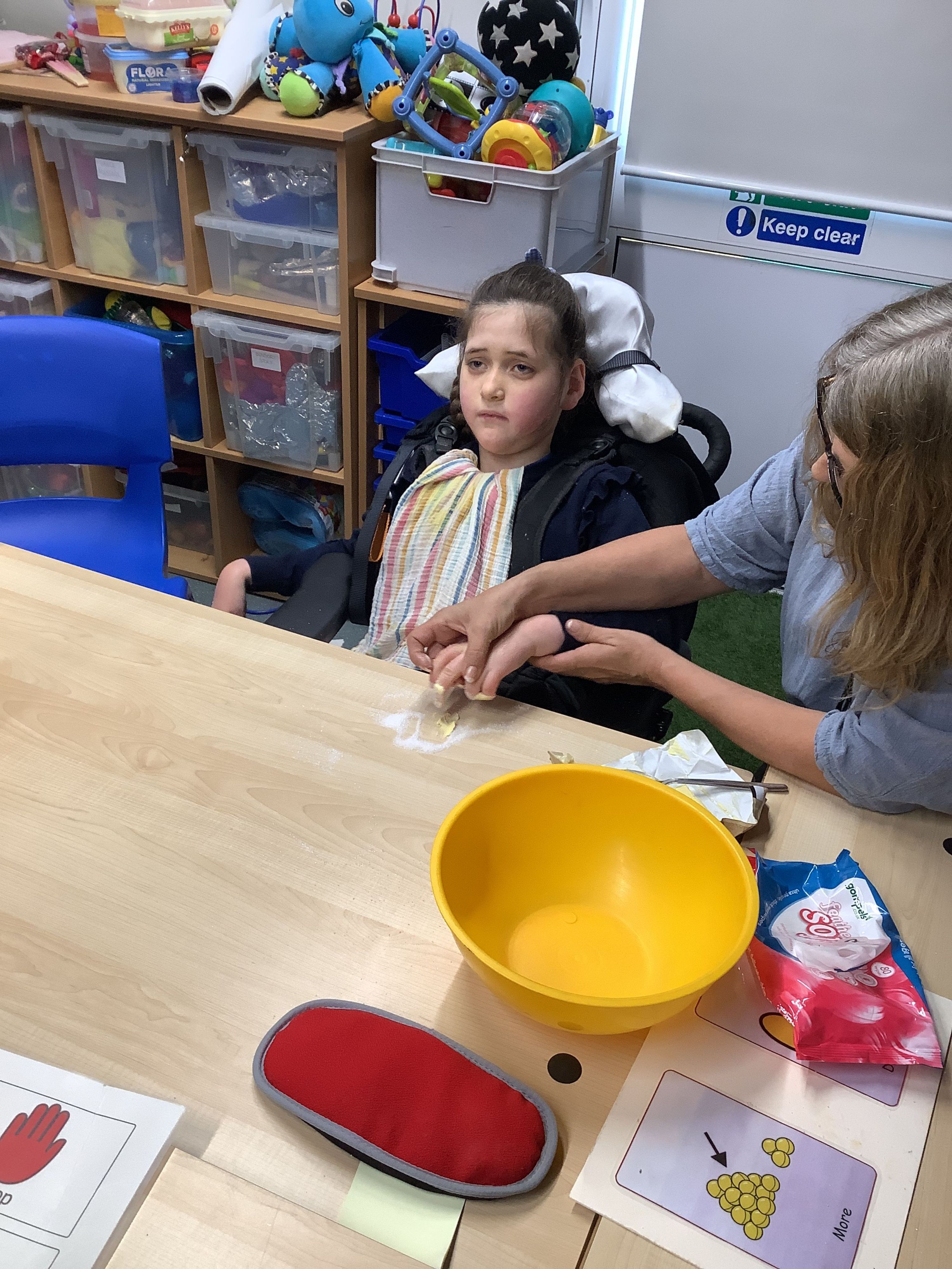 In class this week we have been continuing to explore resources in our most accessible way, and getting stuck into colour, communicating our preferences towards colours which we would like to use to create our own above and beyond planets to decorate our classroom with! We have also started our new baking project of Earth cookies to co with our above and beyond theme, exploring both familiar and unfamiliar ingredients and textures throughout.