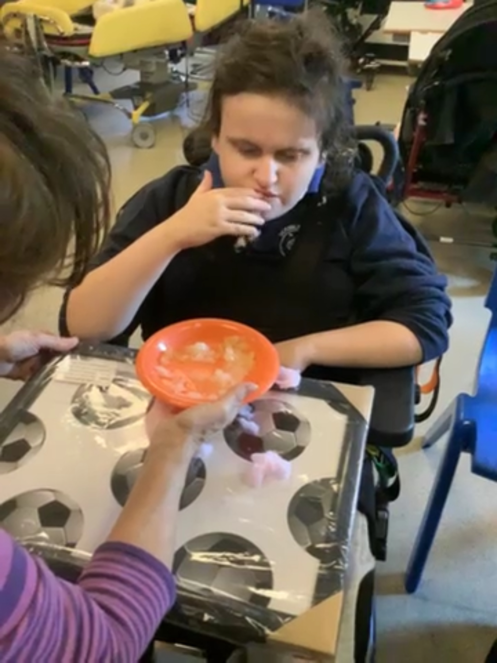 Apple Class loved their Sensory Cookery session. First we explored bubbly water and sensory soap to wash our hands, followed by using all our senses to explore all the different ingredients. We showed preferences and made choices to create a variety of fruit crumbles.