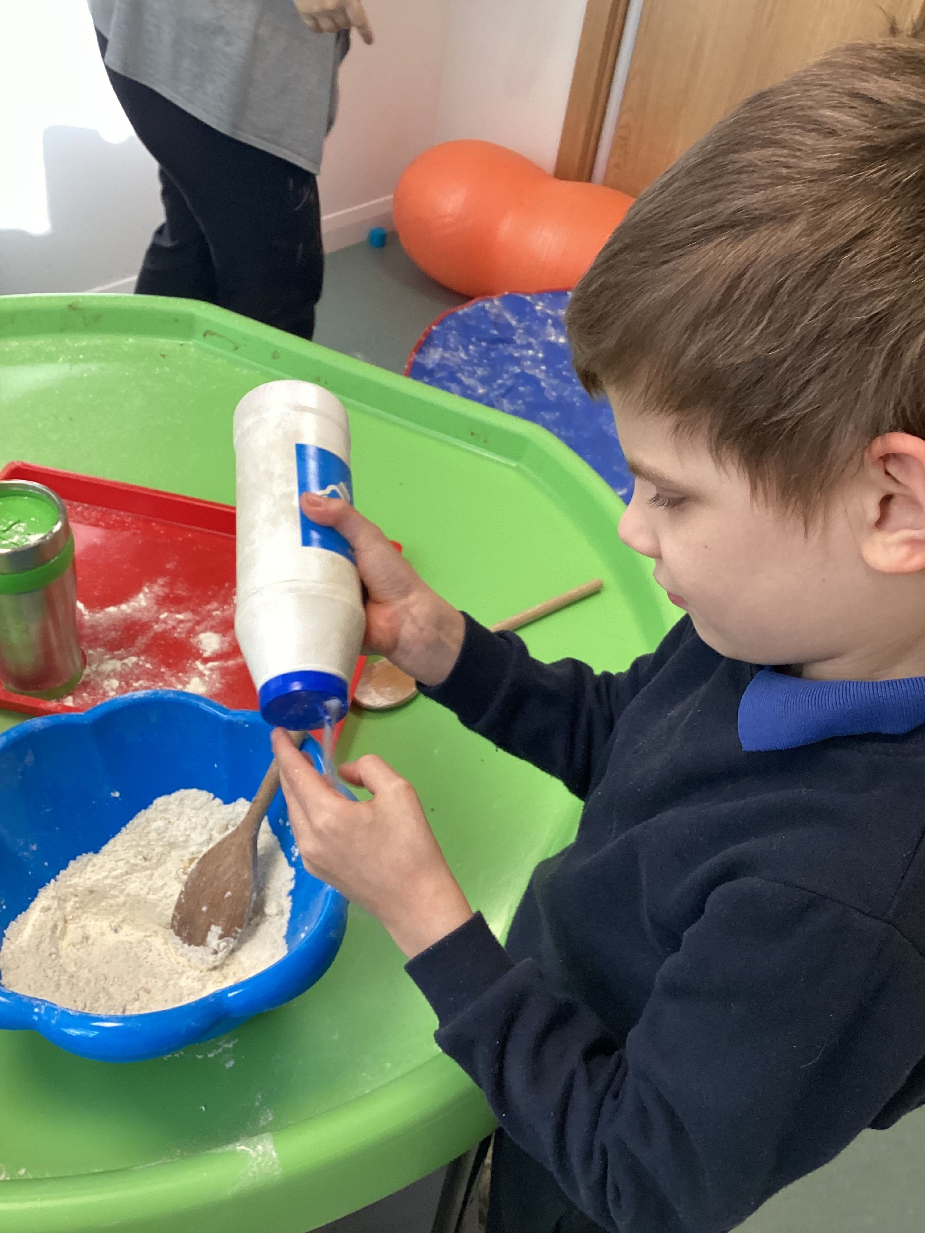 Sycamore class have been creating our own edible play dough through mixing ingredients with support. The learners loved choosing their own smells to add to the dough which has proven popular!