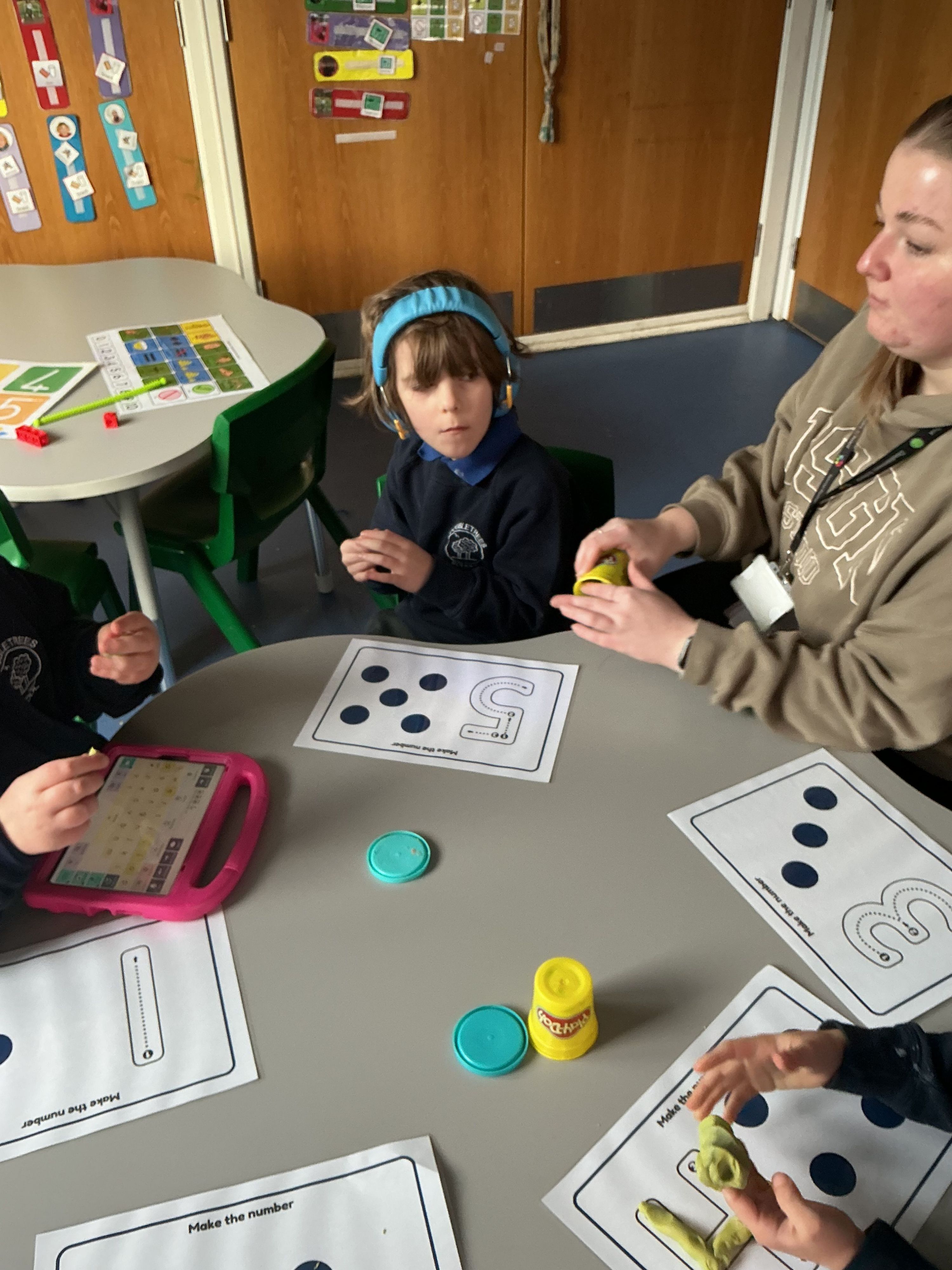 Oak class have been learning to count to 5 and what quantity from 1-5 look like through tactile, sensory exploration. Learners were supported to join in with counting and make different amounts of play dough balls to match each quantity.