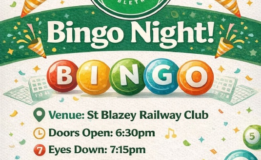 Friends of Doubletrees Charity Bingo. 26.03.26 - St Blazey Railway Club. Eyes Down 7:15 pm!