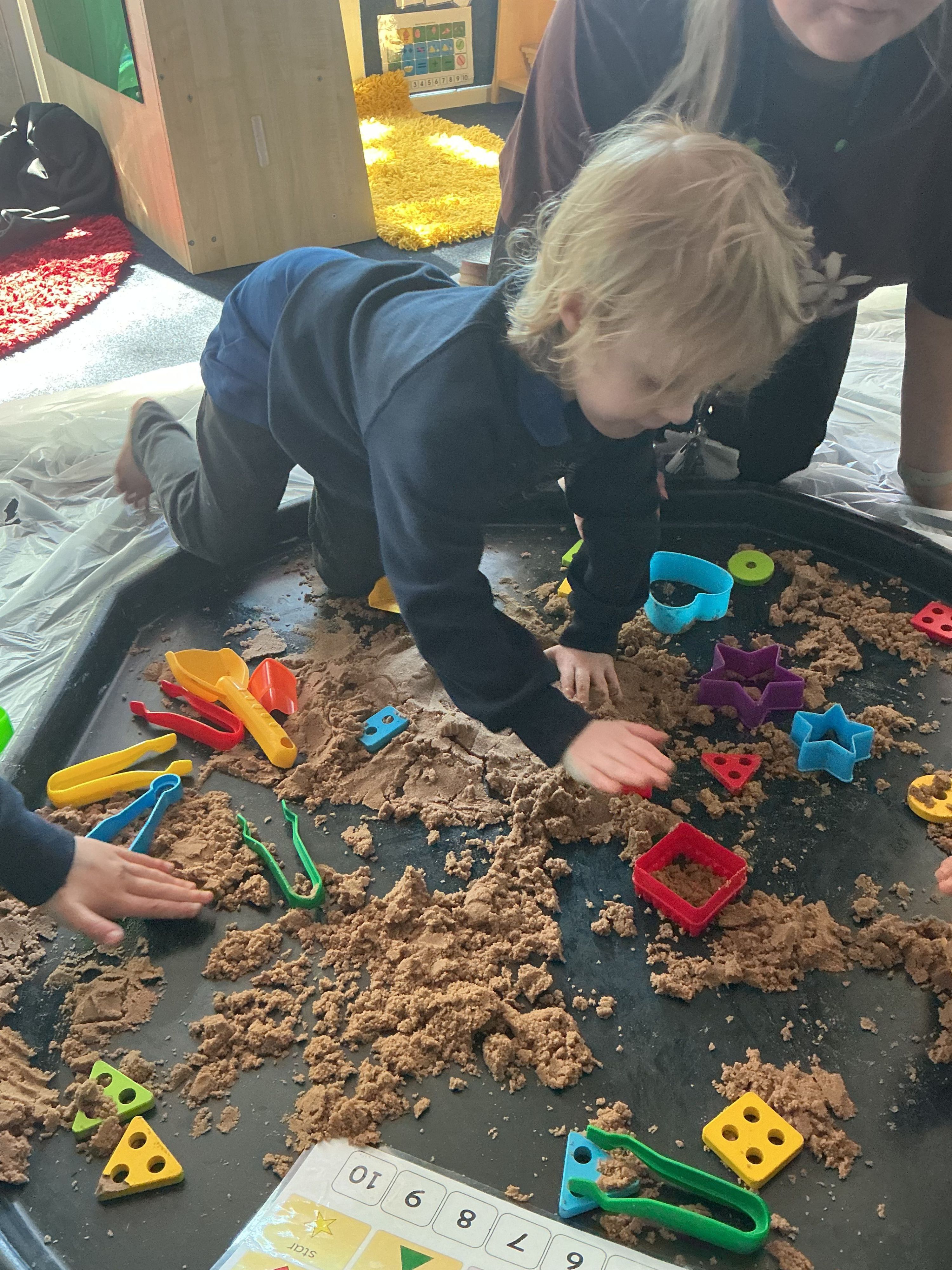 This week Oak class had so much fun exploring shapes through a sensory RISE session. Learners used tools to dig for shapes while adults modelled turn-taking, shape recognition and building basic patterns.